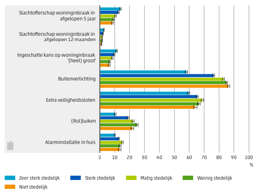 Huizen met een hoge WOZ-waarde zijn relatief vaak slachtoffer van inbraak. Bij een WOZ van € 500.000 of meer gaf 1 op de 5 bewoners aan dat er in de afgelopen vijf jaar bij hen is ingebroken, of een inbraakpoging is gedaan. Deze groep is ook vrij pessimistisch over de toekomst en acht de kans relatief groot dat er in het komende jaar wordt ingebroken.